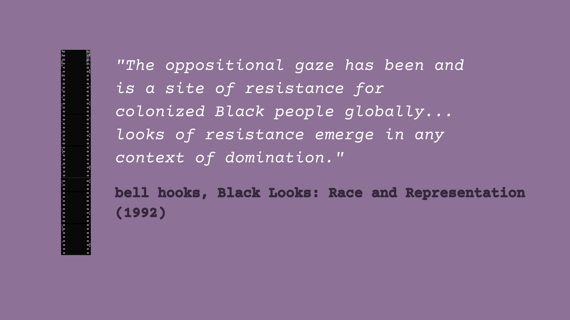 bell hooks articulated the oppositional gaze as the practice of Black spectators, particularly Black women, watching cinema not as passive consumers but as active resistant readers who recognize the ways the camera has historically refused to see them as fully human. The oppositional gaze says: I see what you are doing, and I see what you are not doing.